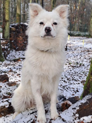 Ulysse est un spitz qui est âgé de 9 mois et qui pese 9 kilos. Il est à sa taille adulte.