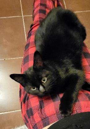 Gentil chaton d'environ 6 mois, de petit gabarit, très gentil et câlin au poil soyeux et doux