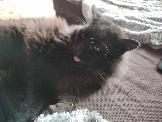Papou est une boule d'amour ultra câline. Il adoooore se prélasser auprès des humains. Avec ses beaux poils longs et noirs on craque pour notre sublime Papou ? Il sait être détendu auprès des humains, vous verrez même sa petite langue dépasser quand il fait la sieste ! Il aime jouer surtout avec les cannes à pêche et les plumeaux ?