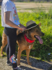 Il balade bien en longe (il préfère la longe à la laisse courte) et a déjà un bon rappel. Il aime beaucoup renifler à droite et à gauche, sans trop s'éloigner.
