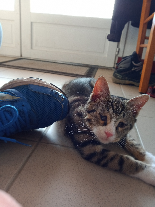 Pour autant, Ximist est un chaton plein de vie qui gère parfaitement son handicap. Il est affectueux et joueur, et il adore les bras. Il est très sociable avec ses congénères