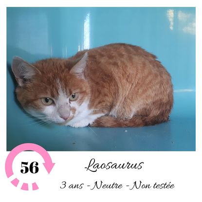 URGENCE EUTHANASIE ! Laosaurus est une minette de 3 ans qui vous attend dans une fourrière du 56. ATTENTION SORTIE AU PLUS TARD LE 6/03/2020 (avant euthanasie) ! Pour adopter, c'est facile : ➡️ On se rend sur la page facebook d'Urgence Fourrière de Bretagne (UFB) -> https://www.facebook.com/sosfourrieresbreizh/ ➡️ On vient en message privé sur la page UFB ➡️ On remplit le questionnaire ➡️ Si le questionnaire est validé, on se rend disponible pour la pré-visite ➡️ On se rend aussi disponible pour venir chercher le loulou en fourrière Les chats sortent de fourrière primo-vaccinés et identifiés. Restera à charge de l’adoptant le rappel de vaccin et la stérilisation qui est OBLIGATOIRE. Les femelles en fourrière ayant été trouvées dans la rue, il y a fort à parier que nombre d'entre elles en âge de l'être soient gestantes ... ---- A PROPOS D'URGENCE FOURRIERE DE BRETAGNE (UFB) Nous sommes un COLLECTIF d'ASSOCIATIONS DE PROTECTION ANIMALE (qui rassemble notamment Moustaches et Compagnie, Bêtes de Scène, les Pachas, Chats Libres de Berné, etc, etc....) Le BUT de ce collectif d'associations est donc de SORTIR ces animaux des fourrières surchargées en les faisant ADOPTER de manière LEGALE par des familles ou en leur trouvant des FAMILLES D'ACCUEIL lorsque des places en association se libèrent.