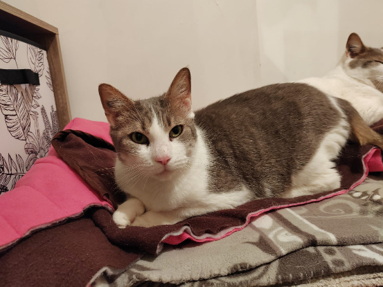 Granit est très calin et proche de l'homme. Un vraie boule à ronron. Il se retrouve à l'adoption avec sa soeur suite au décès de son maitre début janvier.