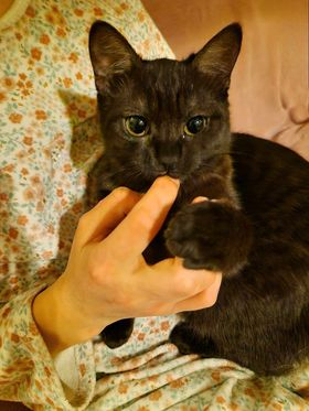 Chatonne curieuse et très joueuse qui ronronne facilement pendant les câlins. Urphée est une petite miette qui aime beaucoup s'installer sur les épaules