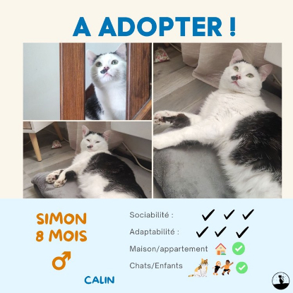 Simon c'est un jeune loulou incroyablement doux. Calin et ronron sont un quotidien avec lui !