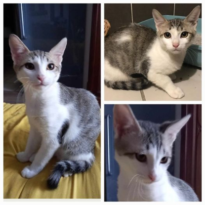 Henry est un chat gris tabby et blanc, il a 6 mois.