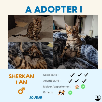 En bref, Sherkan est un jeune chat plein de vie et d'amour. Joueur, gourmand, intelligent et câlin, le loulou a tout pour plaire !