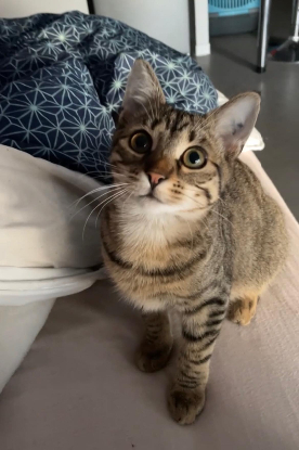 Il avait été trappé avec sa sœur par deux de nos bénévoles. Mango est un petit chat dont il faudra gagner la confiance mais qui se révèlera très câlin une fois celle-ci acquise.