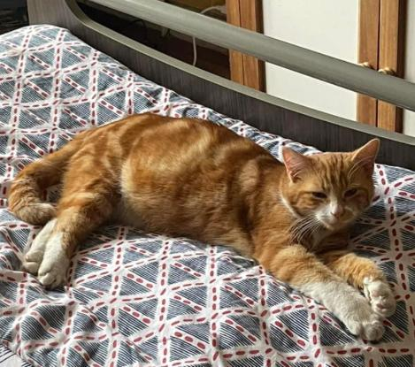 Chouchi est né dans le jardin d’un monsieur âgé. Il a vécu sur le balcon de ce monsieur jusqu’à ce que ce dernier parte en EHPAD. Il est craintif mais sort, ronronne comme un petit moteur, on peut le caresser… il lui faudra un peu de temps pour se sentir bien en confiance !