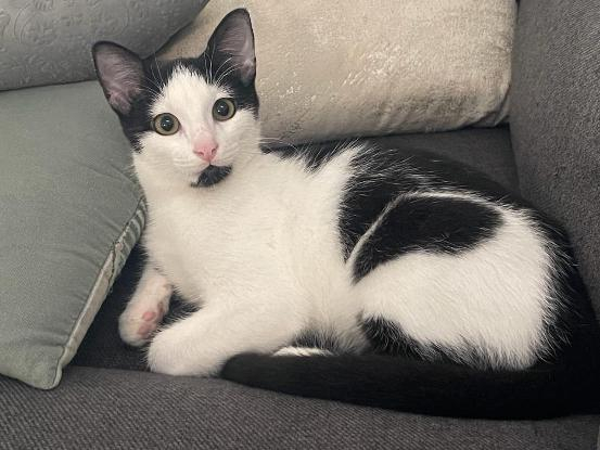 Comme mes deux frères , je m’habitue tranquillement à vivre dans une famille.Je suis timide, mais petit à petit je prends de l’assurance et je ronronne sous les caresses et les gratouilles.