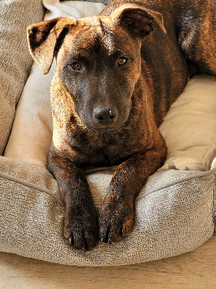 Il est croisé dogue/jagd terrier et son poids adulte est estimé entre 15 et 20 kg.