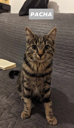 Adorable petit chaton marbré de 6 mois, très câlin, le chat cool par définition. Il adore se reposer en hauteur dans son arbre à chat et vous accueille en ronronnant et en se roulant dès votre arrivée.
