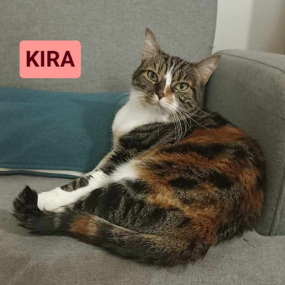 Kira est une jolie minette, pleine de vie et très joueuse. Elle raffole des caresses et ronronne rapidement. Elle apprécie faire de longues siestes après avoir joué avec ses jouets ou son humain.