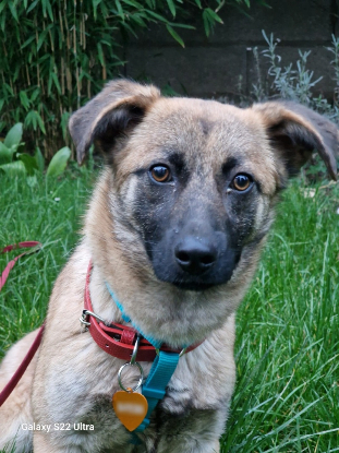 Elle se montre joyeuse et câline. Avec sa famille d’accueil tout se passe bien et découvre la vie en maison. Elle s’entend avec les chiens de sa FA ainsi que le chat.