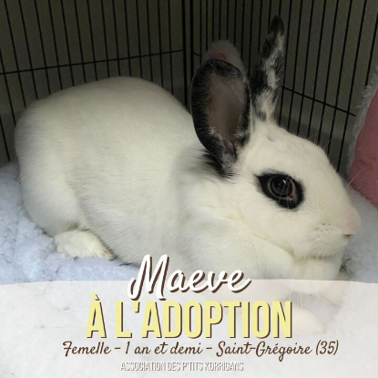 Maeve est une lapine curieuse et dynamique d'1,5ans. Nous privilégierons donc une adoption en liberté totale, dans l'idéal dans la pièce de vie de ses adoptants.