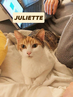 Câline, sociable avec les autres chats et parfaitement propre; Juliette fera le bonheur de la famille qui l’adoptera.