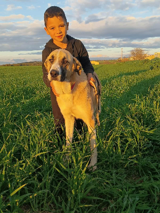Nous l'avions prise pour un mâle et nommée CLIPPER mais nous avons eu la surprise de découvrir une jeune femelle attachante, câline, avec un certain caractère et le côté têtu du mastin espagnol ![]()