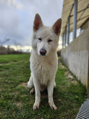 Mon caractère, Je suis un chien tres dynamique et j'aime beaucoup apprendre de nouvelles choses. Je m'entends très bien avec mes congénères. Je connais aussi les animaux de la ferme mais attention il ne faudra pas me laisser avec eux sans surveillance car je risquerais de les blesser en voulant jouer. Je n'ai jamais vu de chat donc je ne sais pas si je peux m'entendre avec eux.