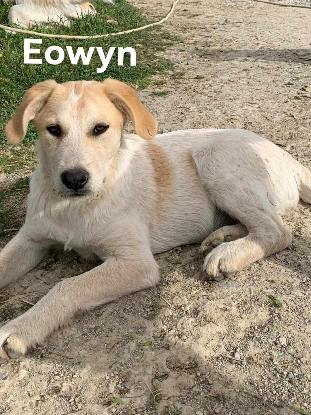 EOWYN est la plus tranquille de la fratrie et pèse actuellement 10 kg environ. Elle est timide mais cherche le contact avec les humains. Elle peut se montrer un peu stressée, nerveuse, par moments mais les caresses et l'amour de sa famille pourront la rassurer.