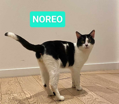 Noreo est un adorable chat rapidement à l’aise, il vient se frotter contre vous et vous réclame des caresses. Son petit plaisir sont les gratouilles sur le bas du dos ! C’est un bon vivant qui aime bien manger et faire une sieste digestive. Aventurier il aimera découvrir son environnement. Il est propre, curieux et calme : ce qui fait de lui un compagnon parfait.
