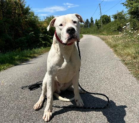 Je suis un grand chien, jeune, avec de la force donc on évitera les enfants, je préfère plutôt des ados pour jouer ! Je m'entends avec mes congénères mais j'aimerai autant avoir une femelle de ma taille comme copine, qui soit sympa et qui me montrera aussi l'attitude à adopter. Je suis sage en intérieur et propre. J'aimerai avoir un jardin clos mais je ne suis pas un aventurier dans l'âme, je ne suis pas tenté par les balades en solo ?