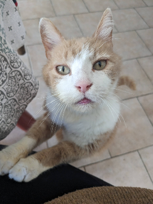 J'aime être en présence de l'humain. Je ronronne comme un tracteur lorsque je me pose sur les jambes des humains et cela peut durer des heures... J'adore le contact !Je m'entends bien avec les enfants.