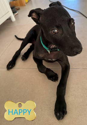 HAPPY est sociable avec les humains et ses congénères. Il n’a pas encore été testé avec les chats.
