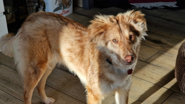Il est propre s'il est sortie suffisamment. Il marche en laisse mais découvre encore les bruits de la rue et tout ce qui s'y trouve. Il s'entend avec ses congénères.