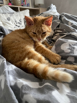 Vadrouille est adorable, très sociable, elle est assez maigre 2,3 kg pour 8 mois, on la sent fatigué, elle a des puces, une gale d'oreilles et des croûtes. Elle a été testé felv/fiv négative, traité contre les parasites et identifié par puce électronique.