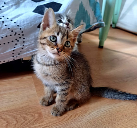Message de sa FA : " Farfalle est un adorable chaton. Il est incontestablement le chef de sa portée ! Il est intrepide, grimpeur, sauteur mais aussi extrêmement calin.Ils aiment les humains qui s'occupent de lui, qu'ils soient petits ou grands. Il adore se mettre dans mon cou ou sur ma tête et y faire ses meilleurs siestes de chaton. Il est aussi très propre et sait rester seul sans anxiété"
