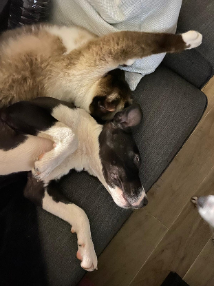 Je suis un petit croisé dogue/border collie né en novembre 2023.