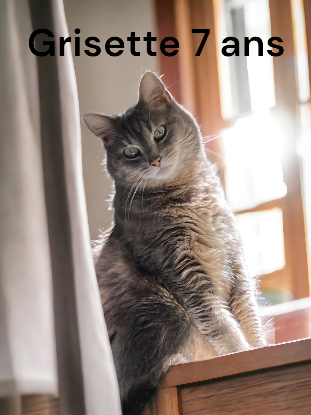 Grisette est revenue d'adoption car elle 'na pas trop accroché avec le monsieur du foyer. Apparemment elle a + d'affinités avec les femmes...