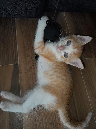 Caractère : Aujourd'hui Zazou est un chaton très joueur, il est agile et un peu gourmand. Il aime aussi jouer à la bagarre avec ses sœurs jusqu'à s'écrouler de fatigue tous les 3.