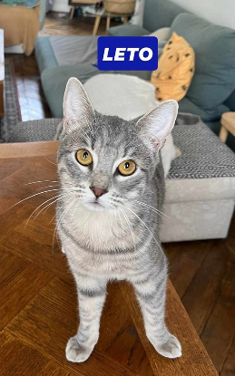 Leto est un petit chat tigré gris très mignon qui adore passer du temps avec ses humains que ce soit pour des câlins ou des moments de jeux.