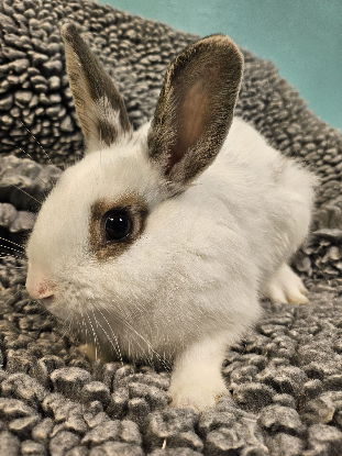 Marvel est un lapin Nain, Mâle, couleur Blanc et Noir, stérilisé, vacciné,vermifugé.