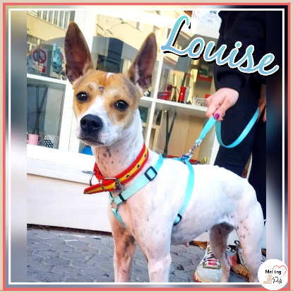 LOUISE a été récupérée extrêmement maigre. Elle récupère bien et reprend un peu de poids petit à petit.