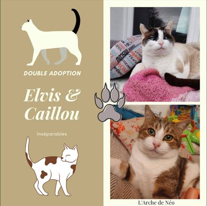 Caillou et Elvis sont tous deux vaccinés (deux injections typhus, coryza et leucose faites), castrés, identifiés par puce électronique, déparasités et testés négatif FIV et FeLV.