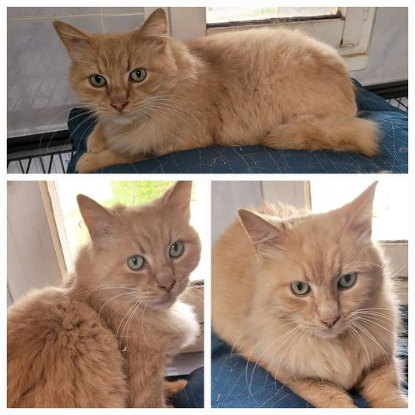 C'est un chat issu de la rue, abandonné suite à un déménagement ; il vivait dehors nourri par une gentille personne.