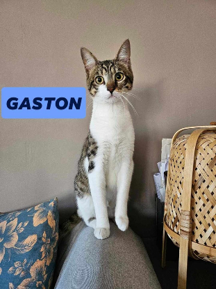 Gaston est un chat bien dans ses baskets. Pas du tout peureux et très sociable, il est à l'aise autant avec les humains qu'avec les autres chats. Il appréciera grandement un copain chat pour lui tenir compagnie et faire de longues parties de jeu avec lui.