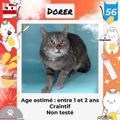 Dorer, mâle de 1-2 ans craintif (un comportement normal en fourrière) qui vous attend dans une fourrière du 56. ATTENTION SORTIE AU PLUS TARD LE 19/04/2023 (avant euthanasie) !