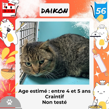 Daikon, mâle de 4-5 ans craintif (un comportement normal en fourrière) qui vous attend dans une fourrière du 56. ATTENTION SORTIE AU PLUS TARD LE 19/04/2023 (avant euthanasie) !