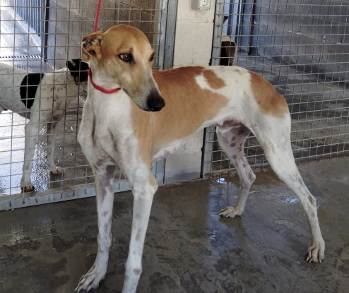 Galgo sociable avec les humains et compatible avec ses congénéres, abandonné par son galguero avec d'autres compagnons d'infortune.