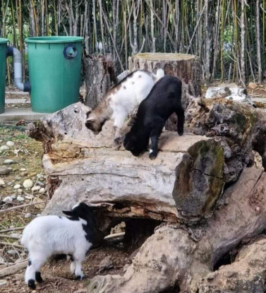 Un chevreau nain blanc, marron et noir né le 25 février.