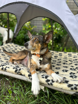 Margot est un petit bout de chienne adorable, joueuse, câline et sociable mais elle a son petit caractère. Quand elle ne veut plus jouer, elle le fait comprendre gentiment. De même pour la gamelle, pas touche ! Rien de bien méchant.