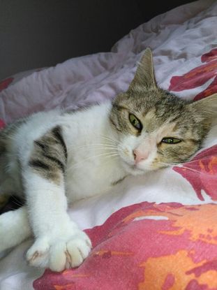 Je recherche une famille pour ne pas retourner à la rue. J'ai environ 1 ans et je viens d'être stérilisée car j'attendais 6 bébés qui ne vivront pas cette vie de misère. Aidez moi ❤️ CARACTERE - Elle est très bavarde, collante et elle aime dormir collée à nous. Elle aime beaucoup regarder la télévision ! Elle est fine, pas bien grande, je ne pense pas que ce sera un gros chat. Elle aime tous les adultes, n'a pas encore été en contact avec les enfants. Elle vivait dehors avec un autre chat, elle est donc sociable avec ses congénères