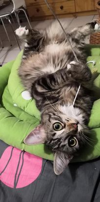 Retour à l'adoption d'Izzie 9 mois. Izzie a toujours été une minette au caractère fort, trappée toute petite sur une convention de stérilisation. La vie en appartement, sans autre chat et dans un foyer peut-être trop calme d'une célibataire, ne lui convient absolument pas et elle a déclaré le syndrome du chat tigre. Elle a besoin d'espace, d'un compagnon de jeux actif et de beaucoup de sollicitations.