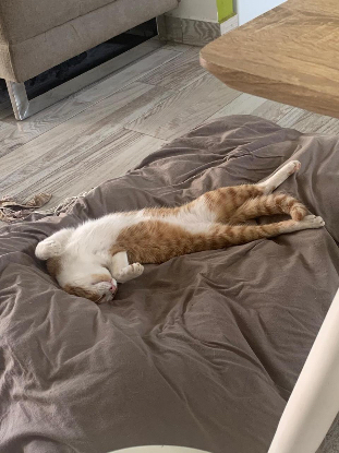 Le message de Yuzu : "Lorsque je suis en confiance, je suis très câlin, les ronrons pendant les siestes sont assurés . Ah et aussi j'adore ma petite pâtée le matin et le soir, gourmand que je suis ! "