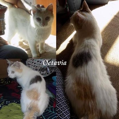Octavia 2 ans et demi est une chatte gentille et affectueuse. Arrivée à l'association avec une infection de l'utérus et une oreille brûlée par le soleil, aujourd'hui Octavia aspire à une vie douce et paisible. Pas de soucis avec les enfants. Tatouée, vaccinée, stérilisée, dépistée fiv / felv. Frais d'adoption à prévoir: 160€. En accueil à Coussay les bois, 86, adoptable hors département. Plus d'informations sur son ententes chiens / chats prochainement.