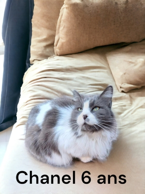 Chanel est une magnifique chatte aux poils longs d’environ 6 ans. Un peu timide au départ, elle se montre rapide affectueuse et très proche de l’humain. Assez calme, elle apprécie sa tranquillité.