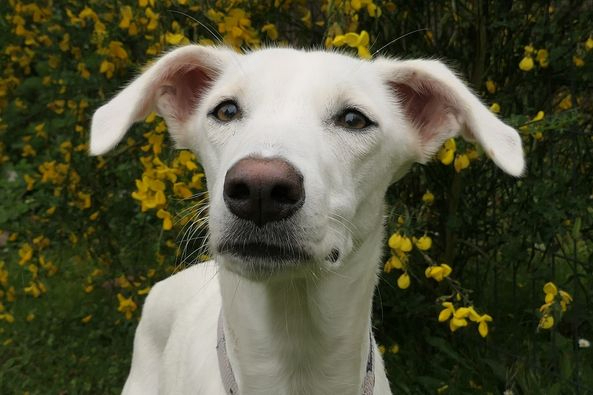 Love est âgée de 1 an et pèse 14 kilos (taille moyenne). Elle a toutes les allures d'un type lévrier.